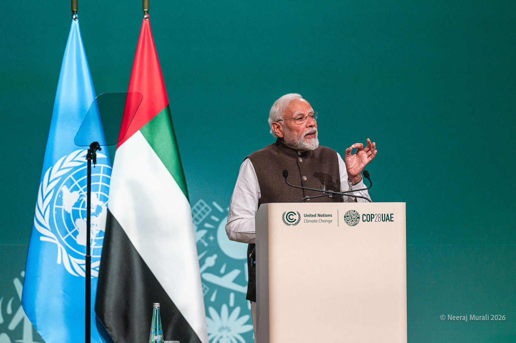 Prime Minister of India Narendra Modi addresses the opening session of the COP28 summit in Dubai, United Arab Emirates.